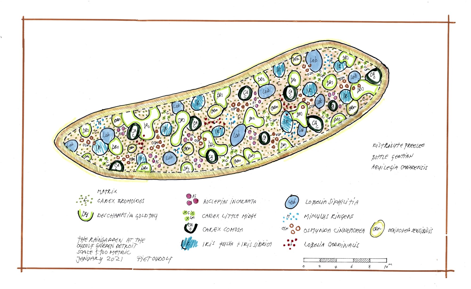 Our demonstration Rain Garden was created with support from the Erb Family Foundation. This is the first Rain Garden that Piet Oudolf has designed, and was created in partnership with technical expertise from InSite Design Studio and Roy Diblik. The Rain Garden collects and filters stormwater from the street, bypassing the sewer via an innovative stormwater inlet and trench drain. Instead of shedding heavy rainwater and debris into nearby Lake Tacoma and the Detroit River, our Rain Garden shows how flowering plants, trees, sedges and grasses can absorb and help infiltrate large volumes of stormwater in a more sustainable way.